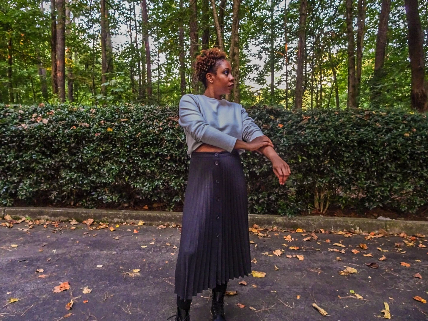 Top & Skirt: Zara; Shoes: Doc Martens ; Hat: Thrift; Heels: Too Old to Tell